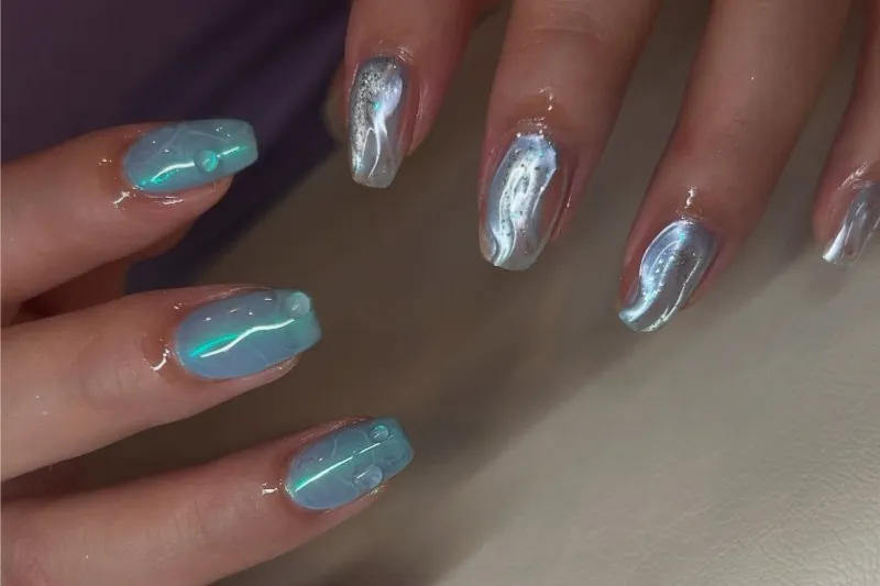 当サロンでは、光の加減や見る角度によって印象が変わる“ニュアンスネイル”が人気です。奥行きや透け感を大切にしたデザインで、屋内と屋外ではまるで違う表情を見せるのが魅力です。トレンドだけにとらわれず、肌のトーンや雰囲気に合わせて色味や質感を丁寧に調整し、さりげなく個性を引き出します。お客様のイメージを丁寧にお伺いしながら、「おまかせ」で世界に一つだけのデザインをお作りすることも可能です。また、マグネットネイルには人気ブランドの上質なジェルを厳選して使用。粒子の細かいマグネットが織りなす輝きは、光を受けるたびに指先を美しく際立たせます。シンプルなデザインでも存在感があります。